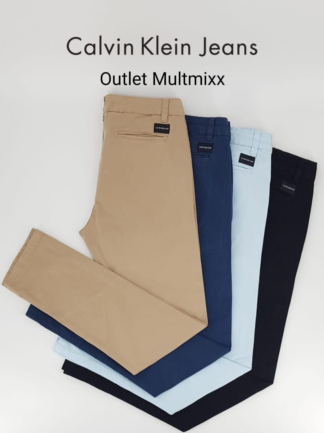 Calça Masculina Sarja CK, caimento slim, com Elastano.